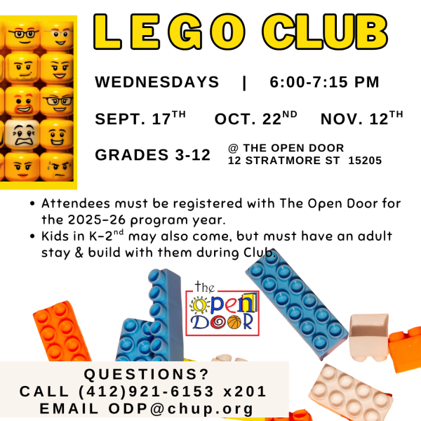 Most importantly, and as with all our programs, Volunteers are here to LOVE kids! So even if you don't know your 3x3 from a 6x2 or haven't played with LEGOs for 3 decades - You are still needed and important in the lives of every kid that walks through our Open Door. Join our growing team of volunteers!